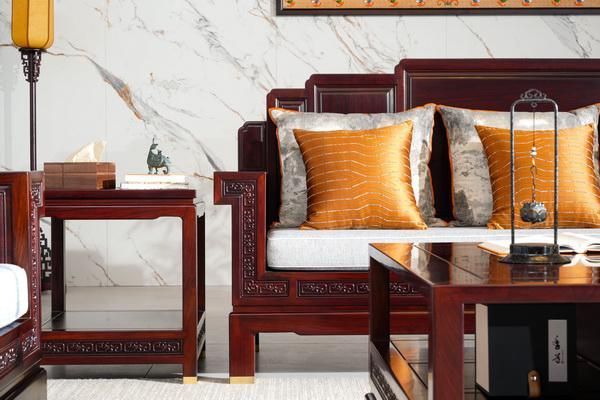 古森红木《歌画沙发》简化传统繁复雕花,仅在关键部位保留东方元素,完美适配现代装修风格