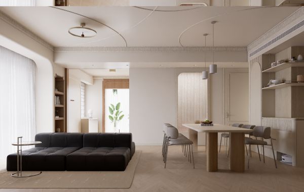每一处弧形线条、每一件精选家具、每一束自然光线、每一件陈列品,都不仅仅是功能的实现或美的堆砌,更是对居住者日常生活的细致体察与深情回应。这套公寓不仅仅是一个居所,更是一个充满自然时尚气息、能够安放身体、滋养精神、激发灵感的生活艺术馆。在程和安的笔下,有限的空间被赋予了无限的生活可能,定义了一种属于当代都市的、精致而温暖的理想生活范式。