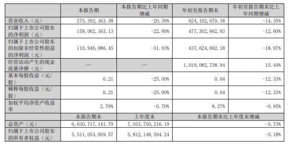 其中第三季度,公司营业收入为1.24亿元,同比下降36.2%;归母净利润为561万元,同比下降37.9%。