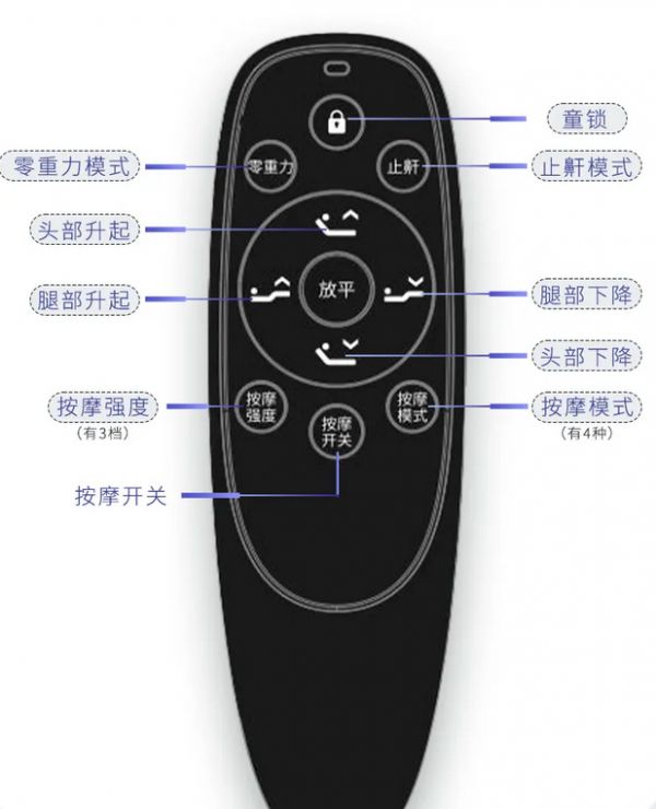 零重力模式-头部微升15°,腿部抬至25°。模拟宇航员在太空的失重姿态,全身重量均匀分散,仿佛漂浮于云端,瞬间进入深度放松。