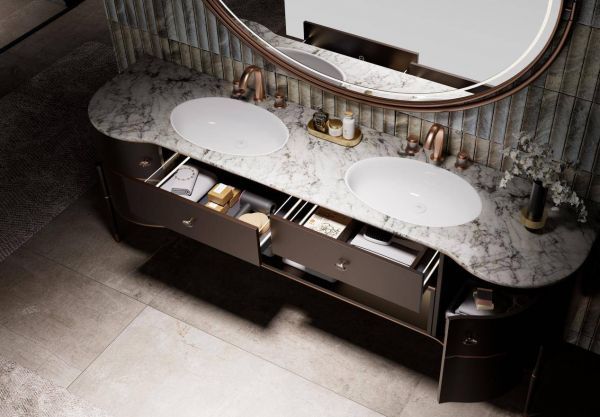 乾妃卫浴深谙“产品为王”之道,其产品体系紧密顺应市场需求与消费趋势,构建了强势且专业的不锈钢金属高定家居矩阵。品牌专业定制生产的不锈钢浴室柜及系列家居产品,不仅仅是功能性的家具,更是融合了轻奢极简美学的艺术佳作。