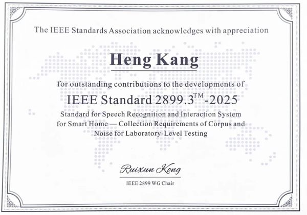 在IEEE 2899系列标准贡献奖颁奖仪式上,联盟对为该系列标准作出突出贡献的专家与企业进行了表彰。云知声作为IEEE 2899.3标准的主要参编单位之一,荣获奖项,充分体现了其在智能语音领域深厚的技术积淀与行业引领作用。