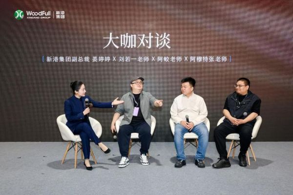 在 「大咖对谈」 环节,姜婷婷副总裁与人造板领域标准起草人及新港首席产品顾问刘若一、抖音工艺头部博主徐远蛟(木作阿蛟)、阿穆特品牌创始人张丙辉进行了一场联通行业全链条的深度对话。他们分别从人造板、定制工艺、交付标准等多元视角,共同探讨了“板材行业的产品价值应该如何呈现”“2026年行业解题思路”两大话题。阿蛟老师谈到,此次新港的展位与大师系列饰面让他眼前一亮,未来,除了看得见摸得着的产品外,搭载优秀的设计师去做落地是一个解题方向。而阿穆特张总说到,产品做好做漂亮是基础,上升维度去关注用户的感受,才是最好的解题思路。他一直喜欢使用新港产品的原因,也正因如此。