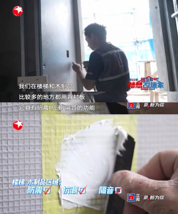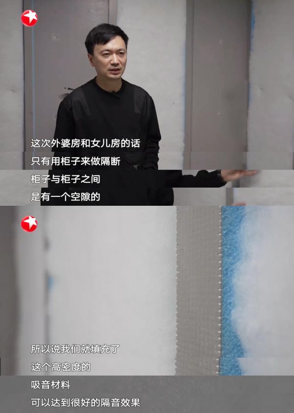 在母亲房与女儿房之间,节目组选用了tetti防水背衬板搭配隔音棉构成轻质隔断结构: