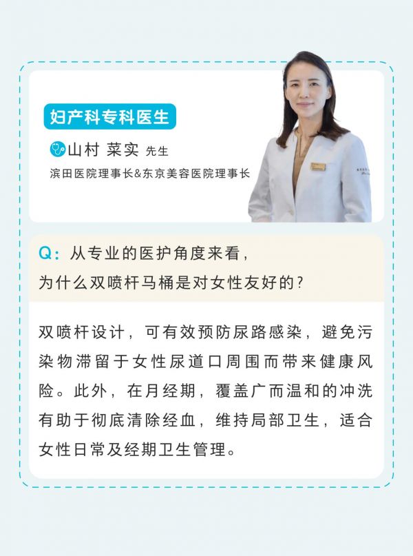 使用其中一个喷杆时,另一个喷杆在座便器内充分隐藏,无须担心其喷嘴会被尿液、污渍溅到而残留细菌污垢,下次被使用时,避免给使用者带来感染风险。