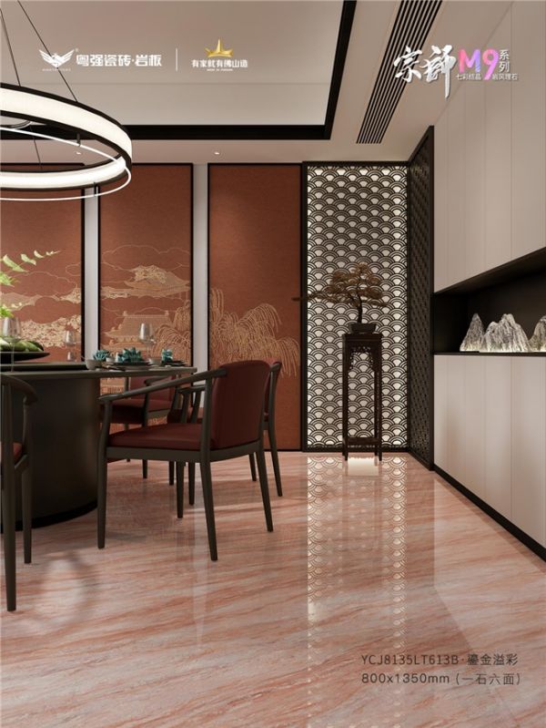 每片瓷砖纹理如自然熔岩流动,光影下宛若鎏金缓缓流淌。