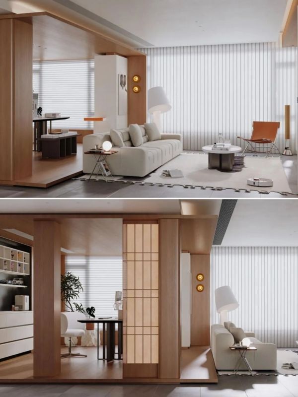通过局部抬高地面打造地台,可以明确划分出书房、茶室或休闲角落等专属区域。