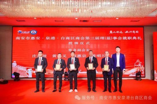 当天还举行了南安市惠安泉港台商区商会第三届第一次会员大会,会议审议通过了商会章程、会费标准和管理办法、选举办法等,选举了新一届理监事会成员,讨论并通过名誉等职务名单。