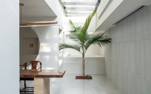 东方美学中的“含蓄”与“留白”,恰恰能为现代生活注入宁静的力量。在《Timeless Elegance》中,天窗泳池映照阳光,芭蕉绿意点缀隔断,书案与古琴静置一隅——这些元素并非装饰,而是将自然与人文编织进日常的叙事线索。