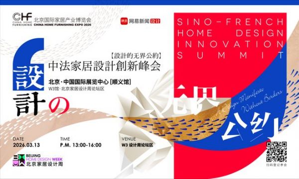 作为首届北京家居设计周的重磅核心——由中展智奥、网易家居、法国国际艺术家与设计师协会等联合主办的中法家居设计创新峰会将于2026年3月13日在北京·中国国际展览中心(顺义馆)盛大开启。