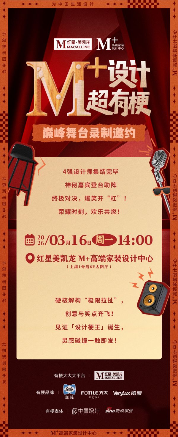 日前,由为中国生活设计的红星美凯龙M+高端家装设计中心发起,全球享誉床垫品牌丝涟、厨房智慧专家方太、意大利进口涂料威罗联合支持,中居设计、新浪家居联合呈现的《M+设计超有梗》设计师限定开放麦进阶舞台上,设计师们给出了答案。