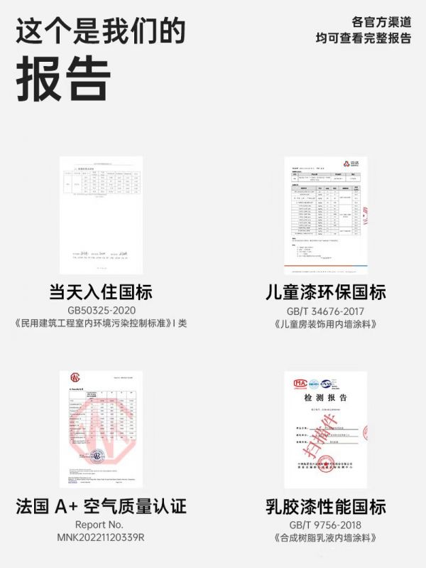1、产品安全性: 是否通过权威环保认证(法国A+、德国蓝天使、中国十环等),VOC、甲醛释放量是否优于国标。