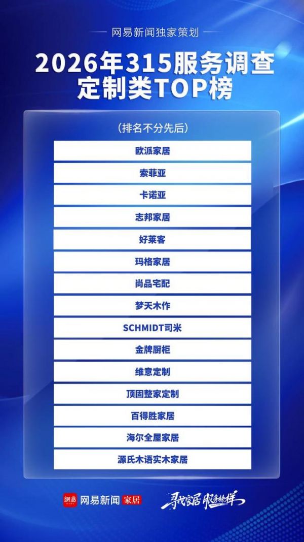 网址: 锚定品质服务!2026网易家居315家居服务TOP榜单发布! http://m.jiajubaike.cn/newsview141675.html