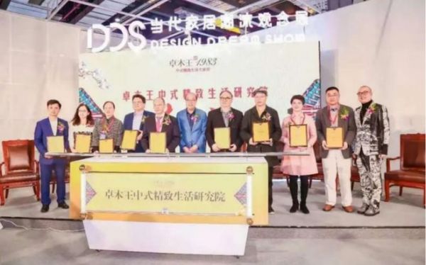 卓木王(右三)被授予《中式红木整装发展趋势白皮书》参编单位荣誉证书