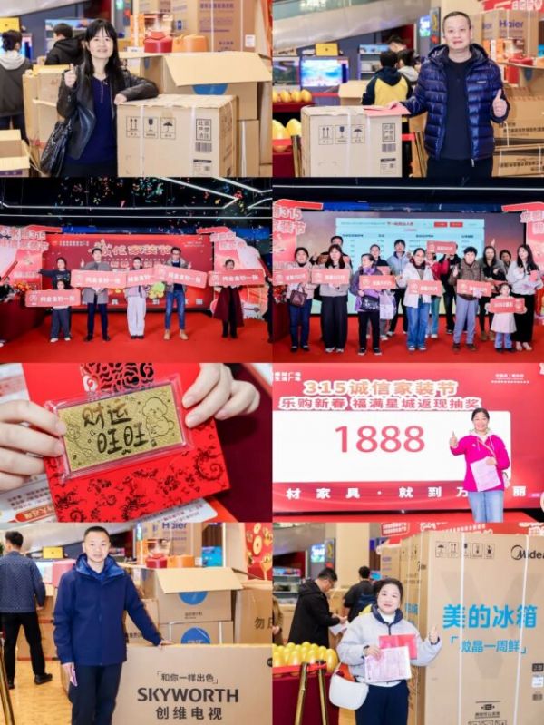 诚信护航,福利加码,活动现场的火热氛围,离不开实打实的优惠与丰富多样的福利加持。作为本次活动的核心亮点,百万级重磅福利倾情放送,政企双补贴的叠加支持,切实降低了消费者的家装预算,让品质家装更具性价比;大牌全放价、购物大返现活动,覆盖家居建材全品类,从门窗、卫浴到定制家居、软装家电,全方位满足消费者的家装采购需求,让消费者既能买到优质产品,又能享受超值优惠;下单砸金蛋活动惊喜不断,全房家电等好礼送不停,每一次砸蛋都伴随着期待与惊喜,让现场氛围持续升温;更有100个黄金、现金大奖轮番揭晓,当幸运获奖者依次登台领取大奖时,脸上洋溢着喜悦的笑容,现场欢呼声、掌声此起彼伏,将原本就热闹非凡的氛围推向一个又一个高潮。