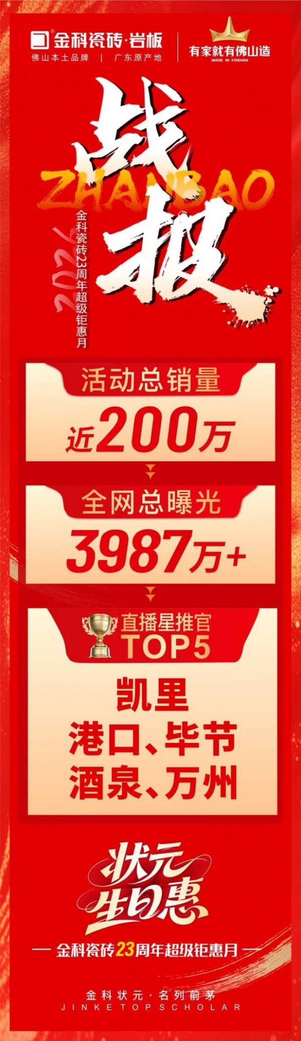 状元庆生,全线告捷 | “状元生日惠”金科瓷砖23周年超级钜惠月圆满收官!