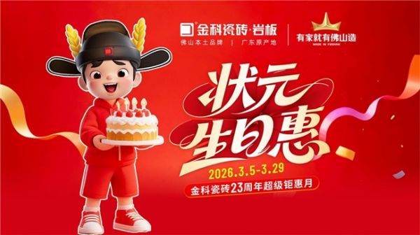 阳春三月,战鼓擂动;状元庆生,佳绩频传!为期25天的「状元生日惠」金科瓷砖23周年超级钜惠月,于3月29日圆满落下帷幕。这场以“庆生”为主题的全国联动盛宴,再次以火热的势头,点燃了全国消费者的装修热情,交出了一份令人振奋的答卷!