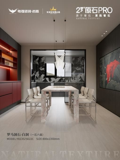 800*1350mm的黄金规格,适配极简、现代、侘寂、轻奢等多种家装风格,铺贴时能最大限度地减少拼贴痕迹;无论上墙还是下地,都能轻松驾驭各种空间。