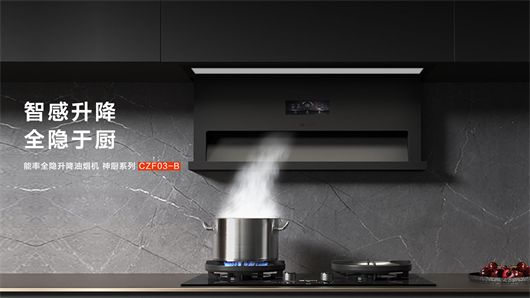 烹饪过程中,油烟是影响厨房环境与舒适度的隐形挑战。能率神厨系列燃气灶支持“灶启烟随”智能联动功能,灶具点火时烟机自动启动,从源头减少油烟侵害。与之配合的神厨系列全隐升降油烟机(CXW-200-CZF03-B),搭载智感升降科技:关机时机身完全隐匿于吊柜,开机后超薄面板下降逼近烟源,提升吸效。该机型采用325mm超薄机身,具备28m³/min爆炒风量及1200Pa最大静压的AI智能巡航系统,结合挥手操控,实现隐形美学与强劲排烟兼得。灶具与烟机联动协同,让烹饪更洁净安心。