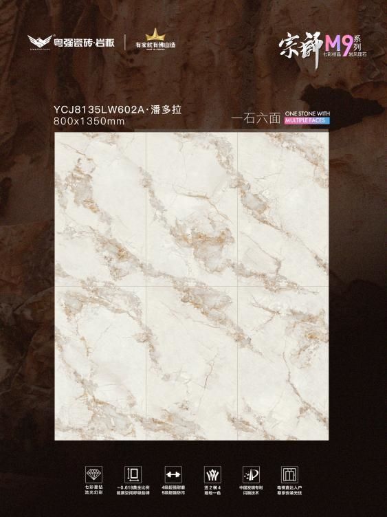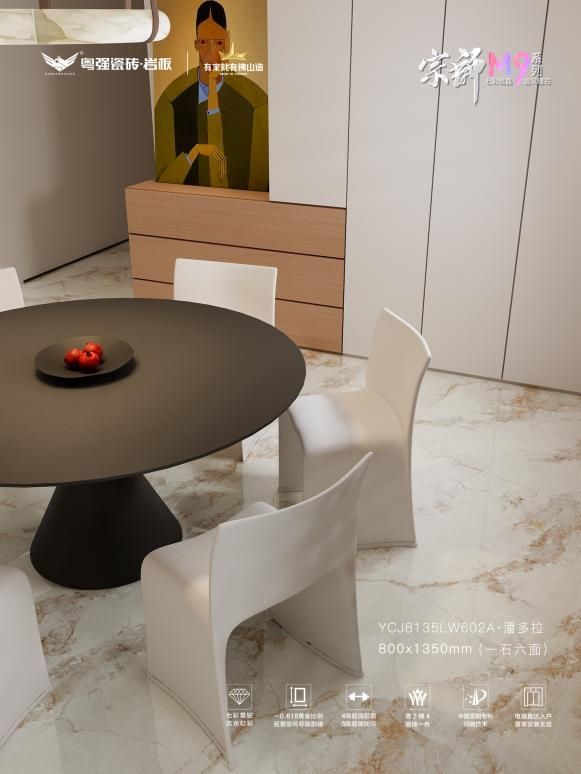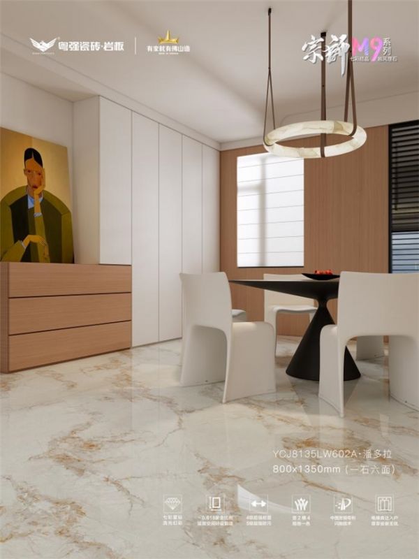 宗师M9七彩结晶系列,以中国发明专利·闪抛技术,在砖面构筑致密晶体层,灯光下绽放出如星河般的动态光影效果,将“步步生金”的东方吉祥寓意,完美融入现代家居设计。