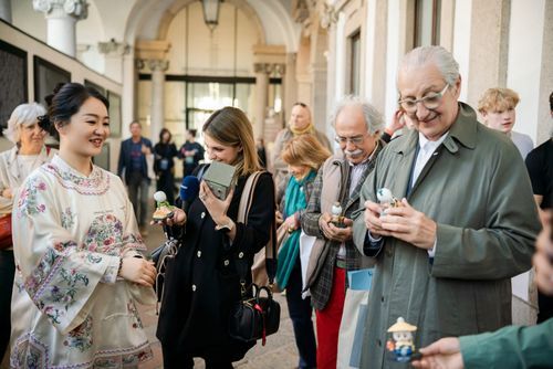 策展人大卫·郎佩洛参观千年舟集团木本馆 董事长陆铜华赠予木作古籍礼物 4月20日,千年舟携作品“汇”(Harmony)亮相于米兰大学举办的2026年米兰设计周中国非遗工匠展;4月21日,参与“中意非遗论坛”,分享了千年舟关于木、非遗、美学以及人类终极栖居的思考与实践,彰显了一个民族品牌的文化自信与时代担当。 4月22日是千年舟品牌日,这艘文化之舟在米兰向世界发出宣言——以匠心守初心,以文化促融合,以共生启未来,为人类共同栖居的未来,寻找一种更柔软、更温暖、更可持续的答案。