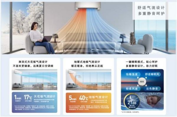 人性化气流设计更是一大亮点,夏天出冷风模式优化为淋浴式天花板气流设计,1分钟出风口温度可达17℃,让冷风不直吹,避免感冒,远离夏日空调病;5分钟快速制暖,配合上地暖式送风形式,告别寒从足起的困扰,让你无忧居家,畅享舒适空间。