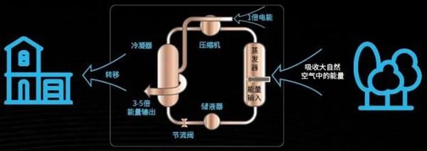 约克天氟地水系列中央空调应用空气源热泵技术,通过吸收大自然中的空气能,利用少量电能将其转化为热能输出,COP值最高可达4.47(即每消耗1度电可产生4.47度电的热量),大大节约了能源消耗,即使超低温严寒环境下,也可保证强效制热!