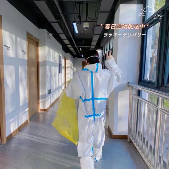 因全城进入封闭管理阶段,所以每栋公寓的保安、保洁员无法按照原有排班交替上班,封闭后需驻店工作,疫情态势不明情况下,每日的消毒、物资运送工作量翻倍,而他们大多上了年纪。大部分客户非常心疼这些叔叔阿姨,主动减少生活垃圾,也有很多人将自己的消毒物品,生活用品送给他们,传达自己的感谢,有的贡献出自家小推车,方便工作人员的派发各类物品。同一屋檐下,人与人之间互相体谅,互相帮助,共克时艰。