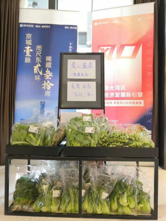 现在,上海朗诗寓门店微信、店长、管家朋友圈里全是蔬菜、食品采购渠道的联系方式,在有限的条件下为诗友们提供尽可能多的选择。朗诗阁的热心诗友将自己的蔬菜分了一部分出来,在门店大堂成立了爱心蔬菜角,无偿供有需要的邻居自取。