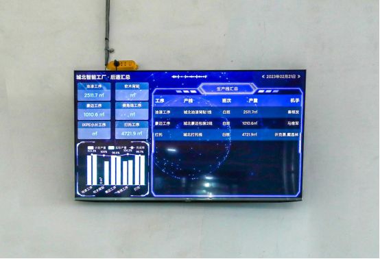 永裕家居引进国际先进全自动智能设备和制作工艺,建成了一套由上料到成品的智能化流水线型生产线,在各生产环节采用数字化管理,持续落实自动生产服务战略。永裕智能工厂集成ERP(物料主数据)、MES(生产计划与生产运营管理)、WMS(立体化仓储系统),来实现工厂物料实时数据呈现、工序扫码报工、AGV物料自动搬运,扫码出入库等一系列工作。智能工厂“战情室”内,中央数据大屏实时显示生产现场与出入库情况,做到安全监控、设备监测,高效管控各环节经营状况,“数据大脑”疯狂运转,“脑”中有数“一眼可见”。